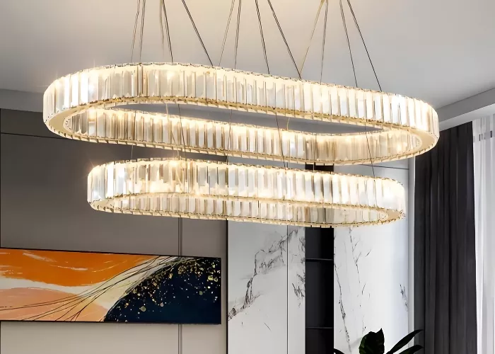 I'm thrilled with this unique, circular crystal chandelier. It was surprisingly easy to install and looks absolutely fantastic. It's a standout piece that enhances the aesthetic of any room it's placed in.