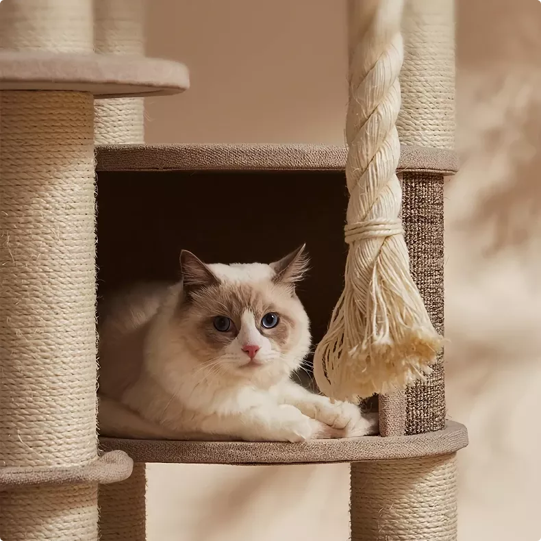 Why settle for an ordinary cat scratcher when you can offer your pet an entire world of fun? Our Cat Tree Tower is more than just an accessory; it’s a haven for your cat to explore and relax. The multiple tiers cater to your cat’s natural instincts to climb and survey their kingdom from high vantage points. Each layer offers a new adventure, from cozy napping spots to exciting scratch posts. Plus, the sturdy wood construction ensures it’s a lasting addition to your home.