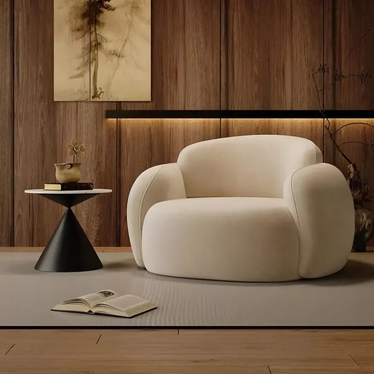 So, I've been on the hunt for that perfect chair. Not just any chair, but THE chair. You know, one that complements your space, invites you to sit down with a good book, and looks so good it could be in a design magazine. Well, folks, I think I've found it. This luxury minimalist lounge sofa is a game-changer. It's like someone took comfort, style, and practicality, threw them into a blender, and out came this chair. I chose the off-white color, which was a risky move with a cat who thinks everything is her bed. But the color was too perfect with my dark grey walls to pass up. And let me tell you, it paid off. The chair adds this fluffy, cozy touch that makes my bedroom feel like a sanctuary. It's replaced an old, bulky rocker I had, and I'm actually using this space now for reading, watching TV, or just chilling. The best part? It's so dang comfy. Like, the kind of comfy that makes you want to stay seated for hours. But here's the real surprise – it's not just a pretty face. This chair is sturdy, well-made, and I can tell it's going to last. Plus, it fits perfectly, even in a smaller space. It's become more than just a chair; it's a piece of my daily routine. Whether I'm throwing on socks in the morning or unwinding after a long day, this chair is where I'm at.