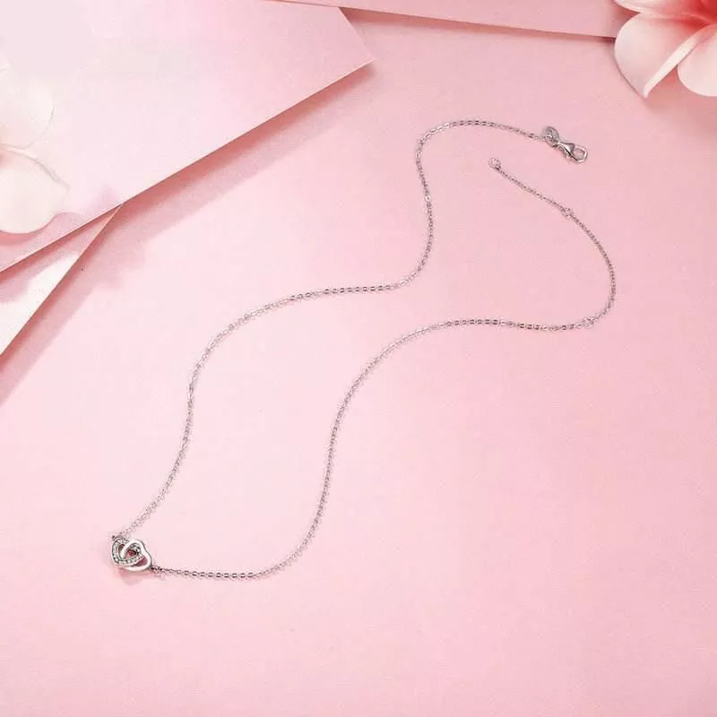 Our necklace boasts a delicate 925 sterling silver composition, ensuring both quality and brilliance. The centerpiece, a connected heart pendant adorned with radiant zircon, embodies the bond between lovers. With its lightweight design at just 2.47g, it offers comfort for daily wear. The link chain provides a secure and adjustable fit, suitable for various neck sizes, ensuring that this piece is not only beautiful but also practical.
