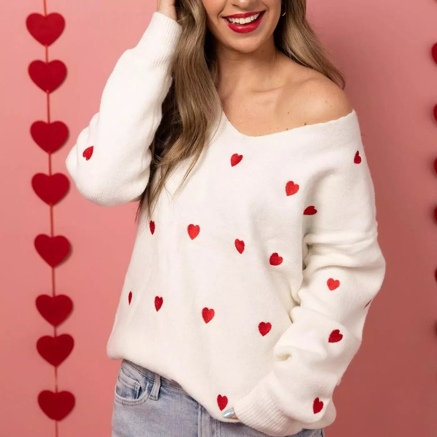 Indulge in comfort and style with our V Neck Embroidery Heart Sweater. Shop now and experience the perfect blend of fashion and coziness. Embrace the winter season with confidence and charm!